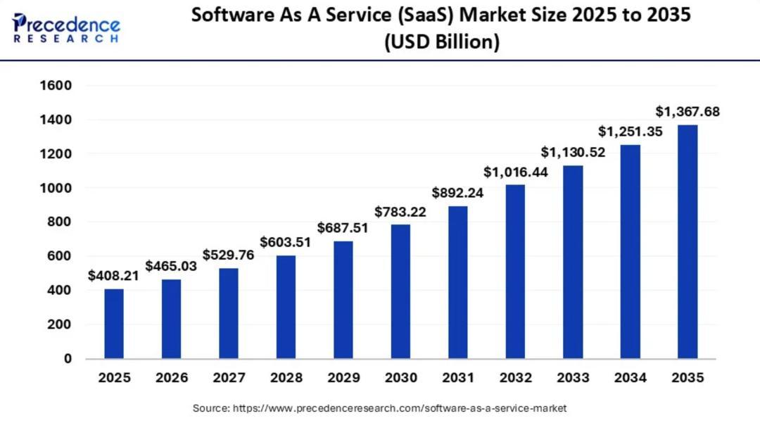 Gartner 在 2026 年 2 月的预测数据显示,全球软件支出今年将增长 14.7%,超过 1.4 万亿美元。Forrester 预测全球 SaaS 市场从 2025 年的 3180 亿美元增长到 2029 年的 5760 亿美元。很明显,这不是一个正在死去的行业的数字。