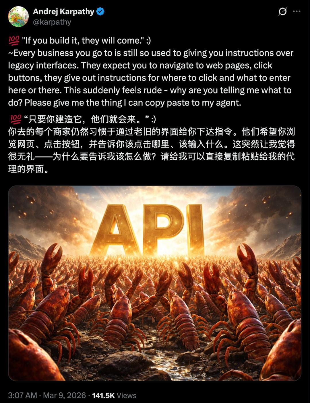 也许在未来某一天,我们真的不再需要打开一个又一个 App,只需要跟 AI 说一句话,它在背后调动十几个工具帮你搞定。就像 Karpathy 所畅想的一样,我们不再需要浏览网页、点击按钮,而是直接一个 Agent 替我们完成所有的事情。